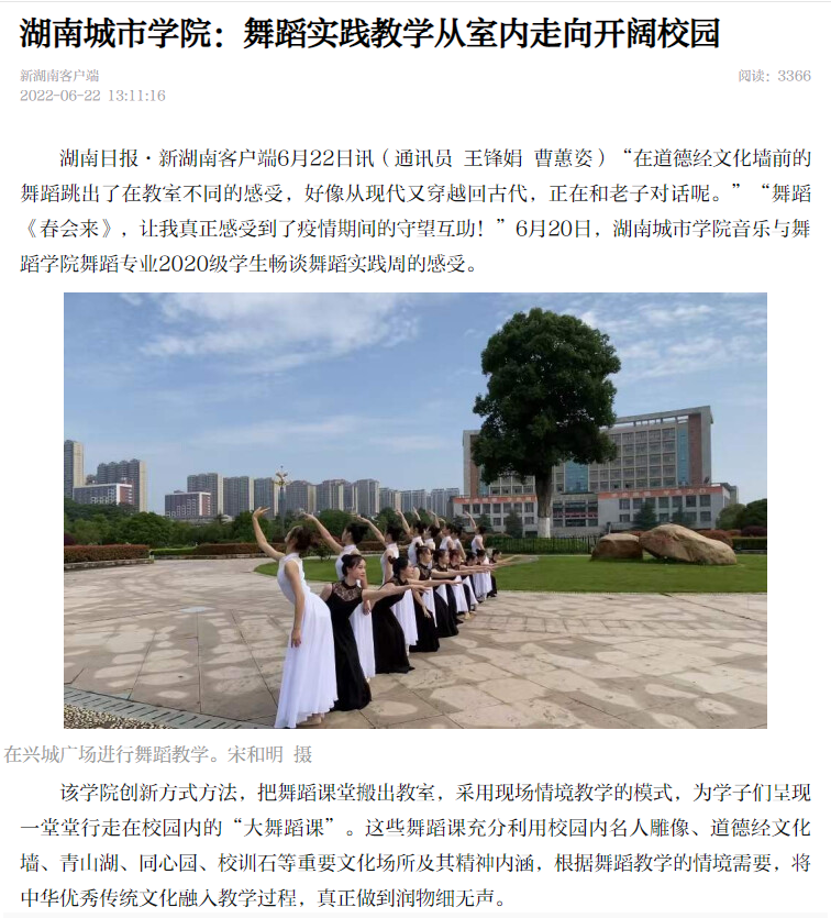 新湖南报道公司舞蹈实践教学|DB真人旗舰集团:舞蹈实践教学从室内走向开阔校园
