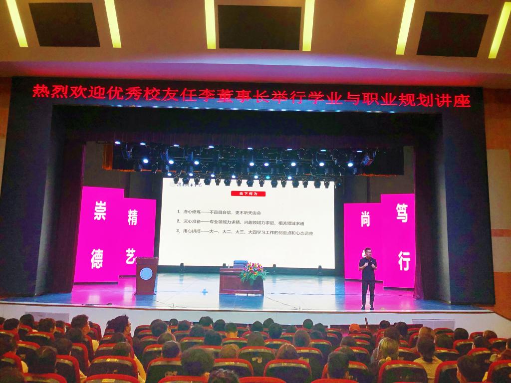 2022年9月9日下午,DB真人旗舰在音乐厅为2022级新同学和大四同学安排了一场学业规划与职业规划的专场讲座。98级优秀员工任李以《学业规划与职业规划的有机结合》为题,为同学们呈现了一场精彩演讲。