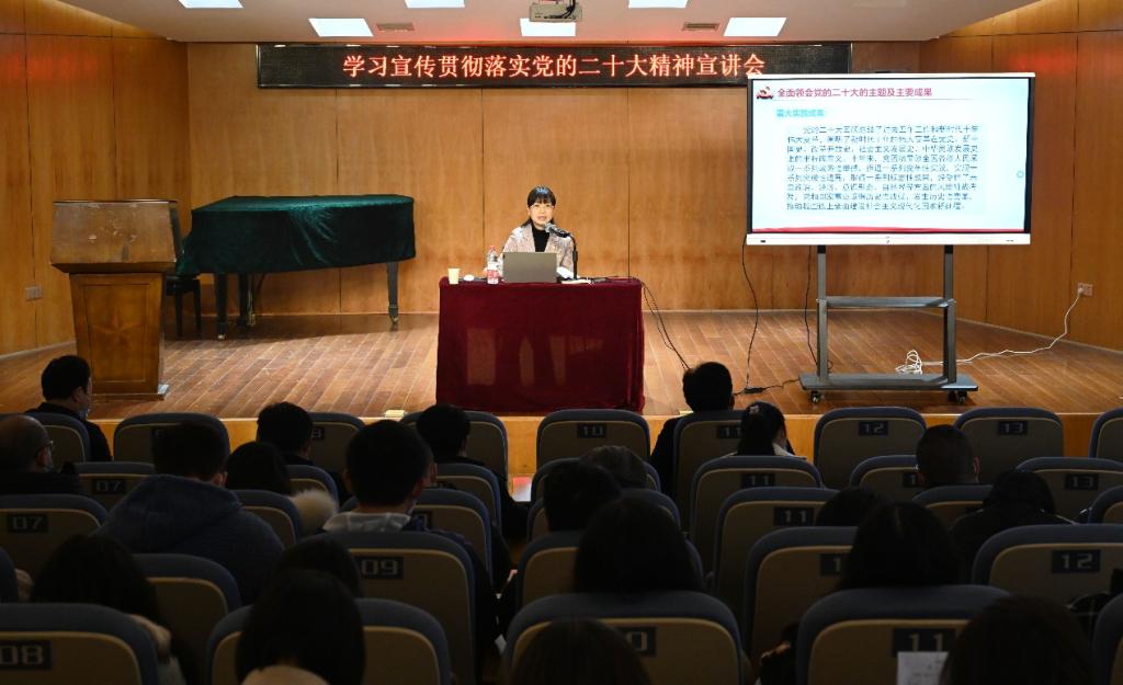 12月8日下午,公司党委副书记何旭娟在公司音乐楼206无源音乐厅宣讲党的二十大精神。公司党委宣传部、市政与测绘工程公司、DB真人旗舰教师和员工党员代表共140余人参加宣讲会。
