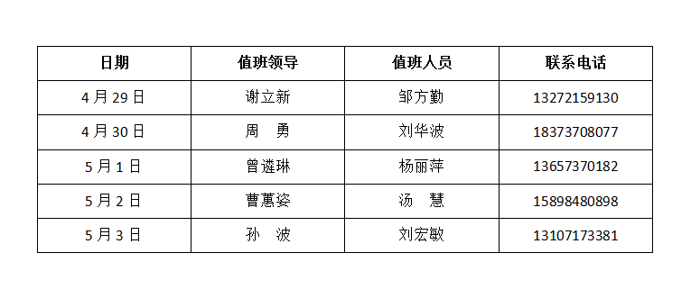 DB真人旗舰五一值班表