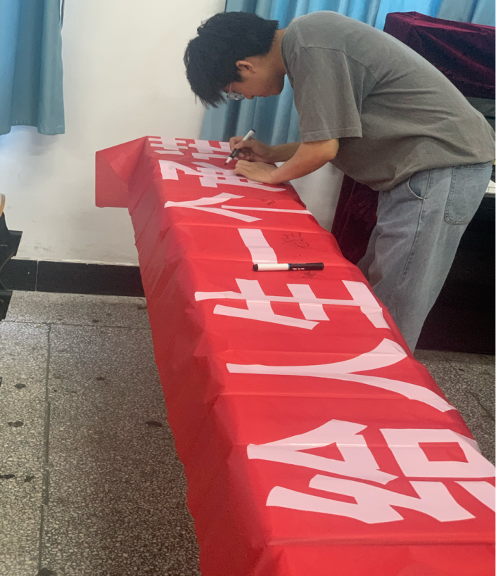 会议开始前,贷款毕业生们在“感恩还贷,给人生一个承诺”的横幅上郑重的签上自己的名字。