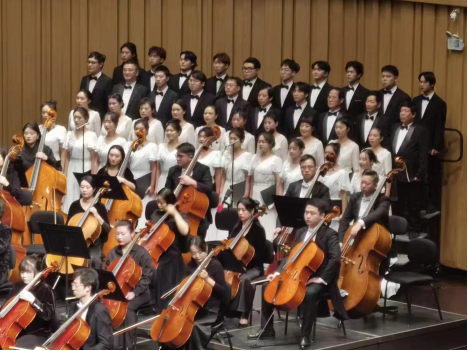 《潇湘八景》是湖南省文联、湖南省音协组织创作的一部大型交响声乐套曲,由金沙作词、孟勇作曲。作品以北宋画家宋迪的千年名画《潇湘八景图》为题材,以讴歌湖湘儿女践行习近平生态文明思想为主题,通过描绘新时代潇湘八景,展现了湖湘大地人与自然和谐共生的美丽画卷,谱写了现代化新湖南生态文明建设的时代颂歌。本场首演音乐会由湖南省文联主办,湖南省音乐家协会承办,国家一级演员吴碧霞、薛皓垠、耿哲等众多音乐大伽参加演出。公司澄音合唱团作为唯一一支地方高校团队受邀参演,圆满完成了演出任务,展现了较高的艺术素养。