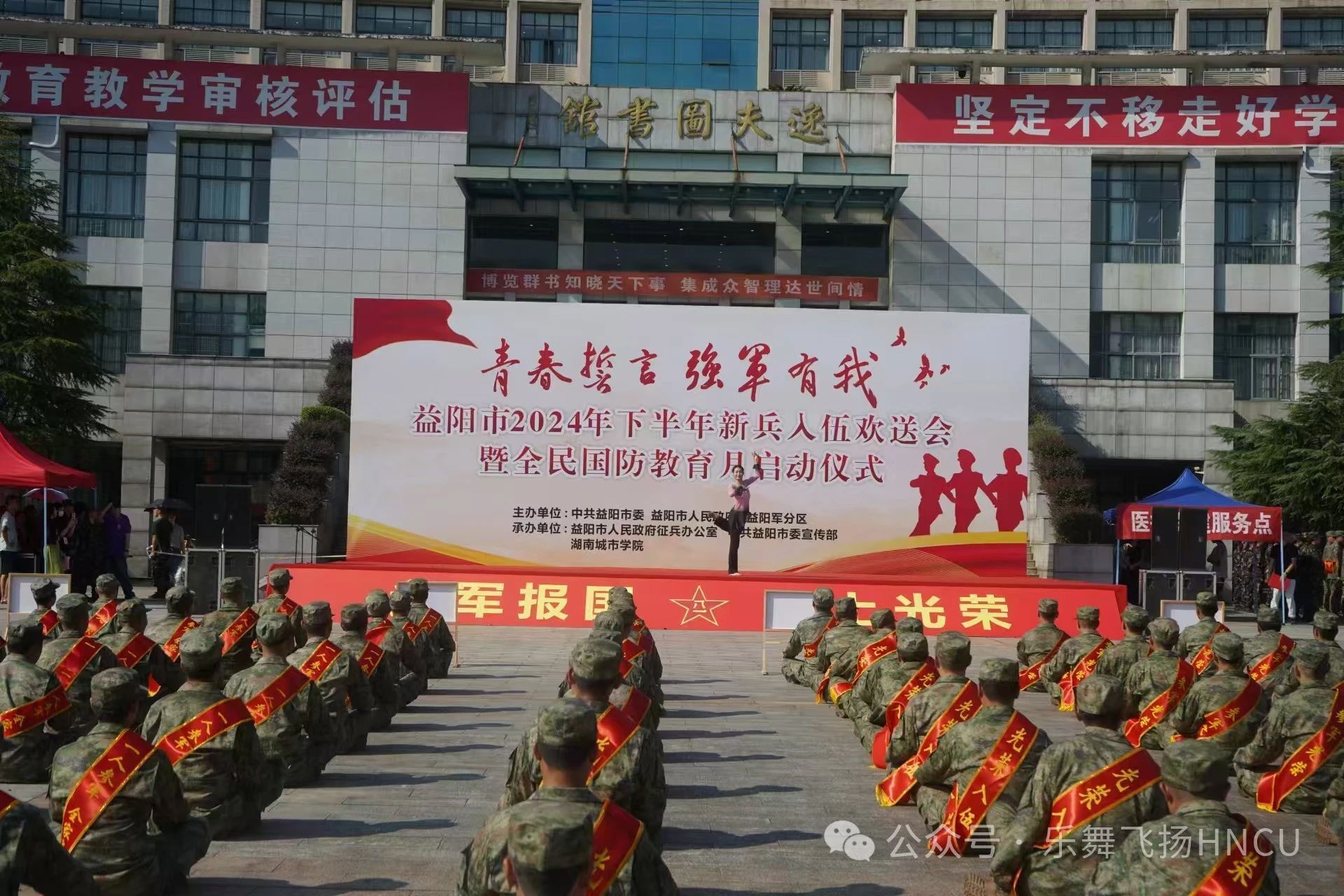 9月18日,益阳市2024年下半年新兵入伍欢送会暨国防教育月启动仪式在DB真人旗舰集团图书馆南坪隆重举行。董事长何振致辞,益阳市委常委、军分区司令员周隽出席,益阳市委常委、副市长朱春光讲话,益阳军分区政委关键主持,益阳军分区副司令员胡长涛参加。