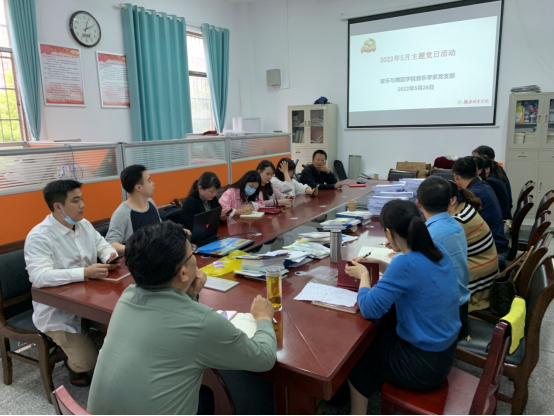 2022年5月26日下午,音乐学系在音乐楼201组织开展5月份教职工政治学习,学习活动由音乐学系支部书记周晋主持。