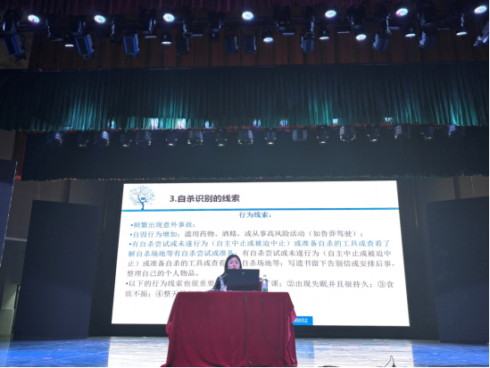 王老师用真实心理案例开场,通过剖析事件背后的成因与应对措施,引导参会员工干部深刻认识心理健康工作的紧迫性与重要性。随后,围绕心理危机的定义与特征、心理危机识别线索、自杀风险的言语与行为线索、压力对心理危机的推动作用、重点人群与关键时节的关注以及心理危机干预策略六大核心板块展开系统讲解。王老师提醒同学们,寝室长和心理委员是公司心理健康工作的重要“前哨”,需提升敏锐度与责任感,通过日常观察和主动关怀,为同学筑起第一道心理防线。参会同学纷纷表示,此次培训增强了自身对心理危机的认知与应对能力,未来将更主动地关注室友及班级同学的心理状态,为维护校园安全稳定贡献力量。