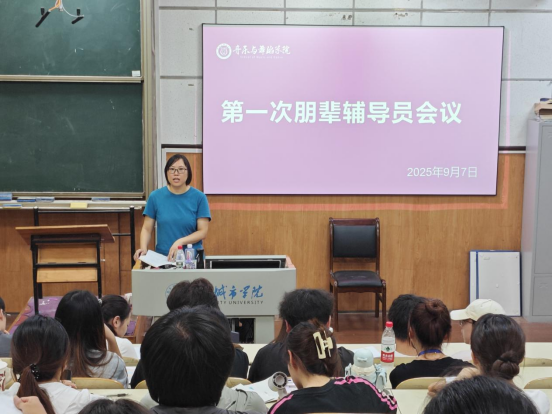 2025年9月7日,DB真人旗舰新学期朋辈辅导员第一次会议在音乐楼106召开。学工办主任、心理专干邹方勤老师主持会议,心理部全体成员、各班心理委员、院朋辈辅导员和各班寝室长参会。
