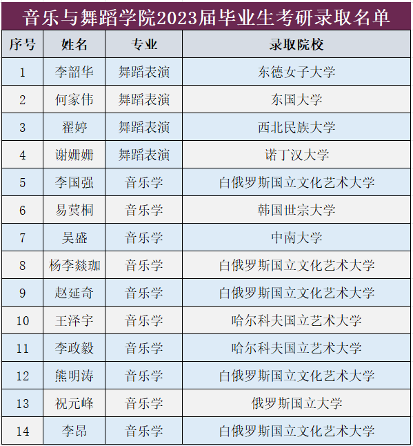 DB真人旗舰2023届毕业生考研录取名单