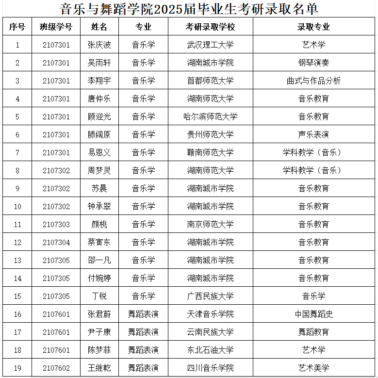 DB真人旗舰2025届毕业生考研录取名单