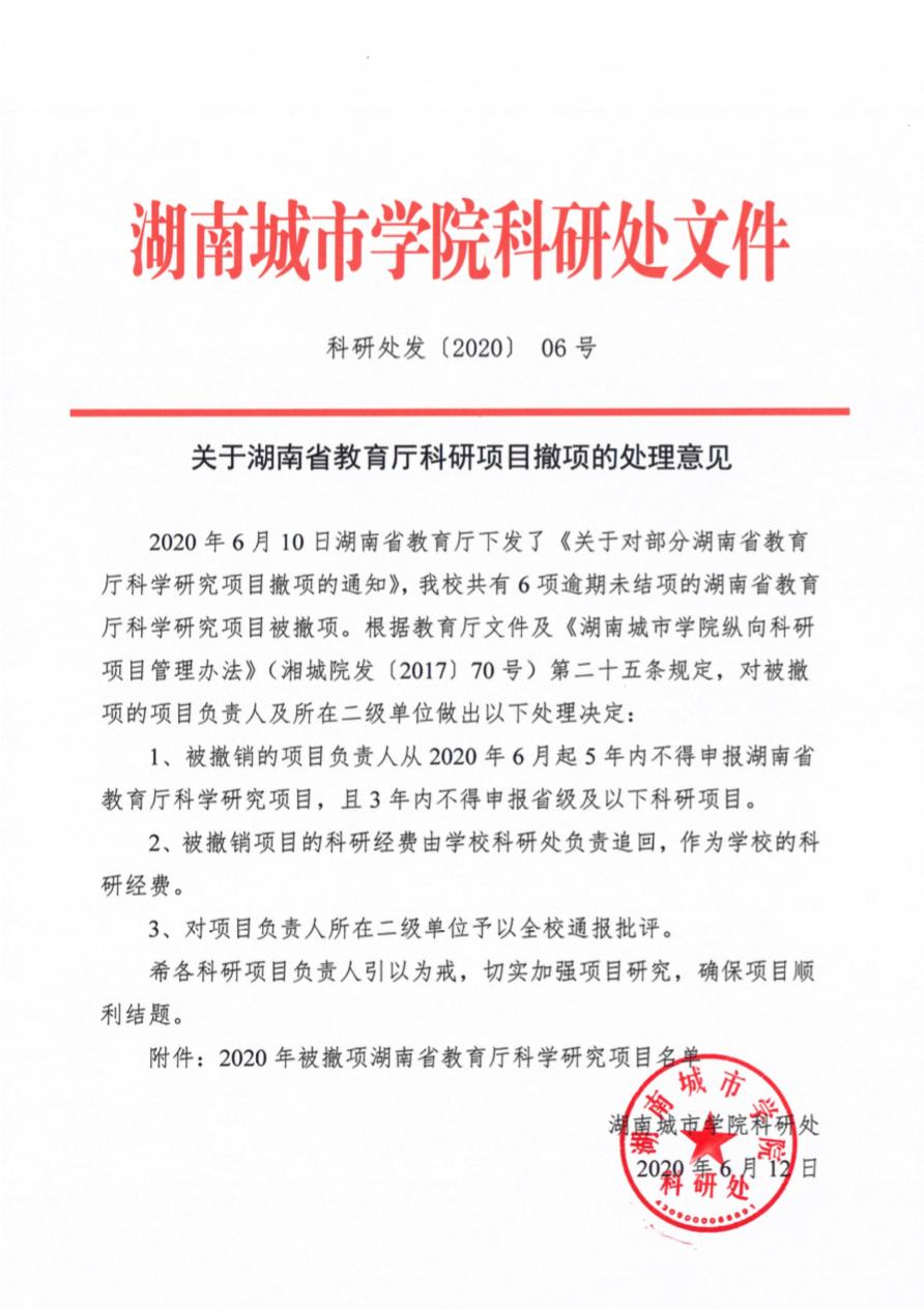 科研处发[2020]06号——关于教育厅科研项目撤项的处理意见