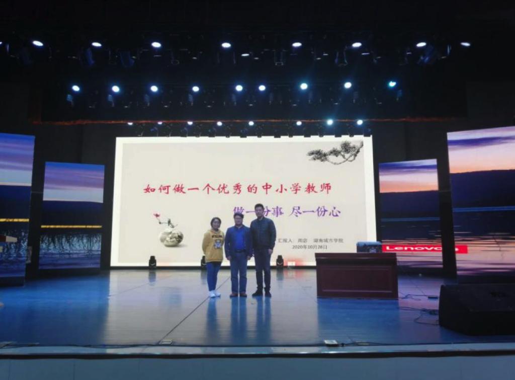 10月28日,湖南省教科院周宓博士来公司作了主题为“如何做一名优秀的中小学教师”的学术讲座。讲座由公司孙波主任主持,公司部分没有课的教师及18级音乐学、音乐表演、美术学3个兼师范专业近300人聆听讲座。