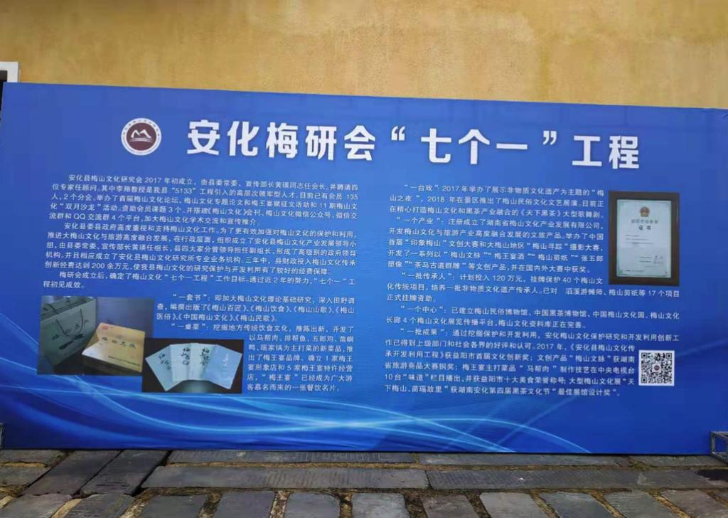 梅山文化是与中原文化、荆楚文化并存的始祖文化,也是湖湘文化的前期文化。湖南省安化县是梅山文化的主要发源地之一,中国梅山文化园的建设,旨在进一步弘扬和传承这一古老而又神秘的地域文化。安化县梅山文化研究会2017年初成立,由县委常委、宣传部长黄瑛同志任会长。梅研会成立后,确定了梅山文化“七个一工程”的工作目标。通过近两年的努力初见成效。大梅山文化和旅游产业协作产业同盟始于文化、也必成于文化。两年来通过多方努力,成立了协作机构、强化了区域交流,开展了协作调研、统一了发展共识,推进了项目建设、加快了产业融合,取得了较大成果,大梅山文化旅游发展新区域正在加快发展,逐步成为湘中崛起的脊梁。