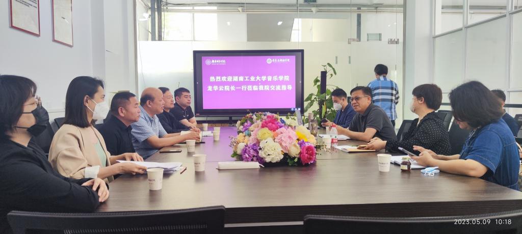5月9日,湖南工业大公司音乐公司经理龙华云、副经理何宁波一行来公司,就学科专业等方面进行研讨交流。公司领导班子、系室主任参加了本次座谈会。