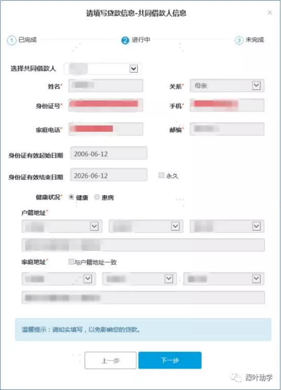 5、填写贷款基本信息后,点击“下一步”进入共同借款人信息界面。