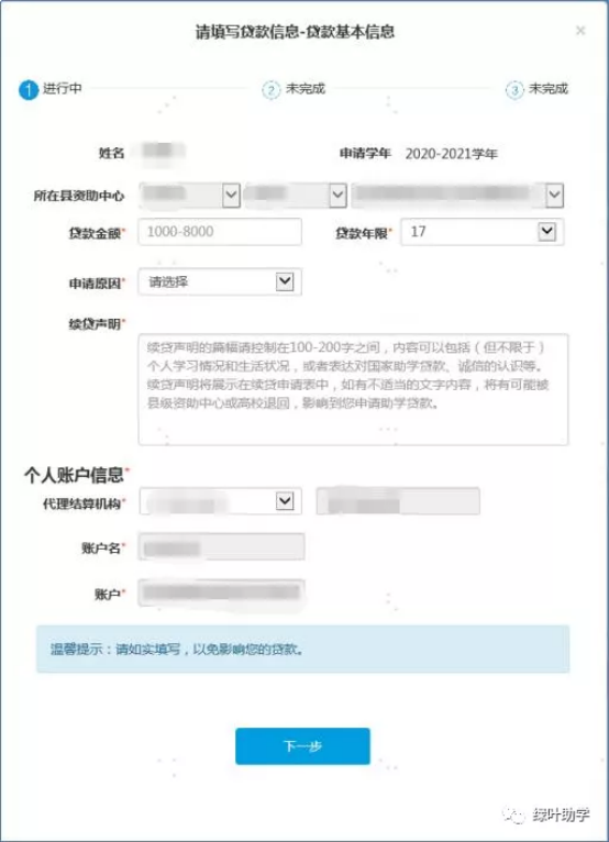 b、贷款申请不存在,按生源地员工在线系统提示开展续贷申请操作。