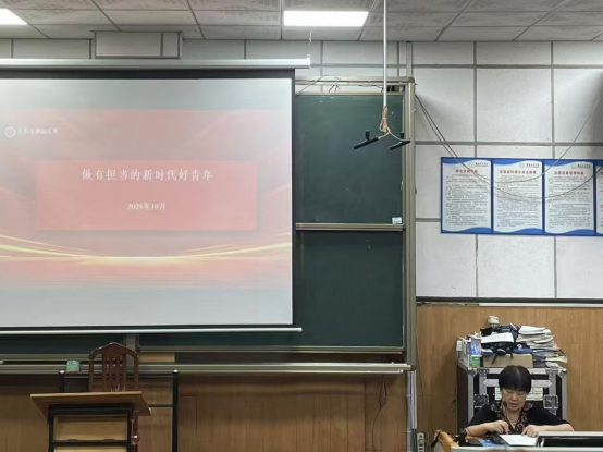 10月17日下午,DB真人旗舰分团委在音乐楼106开展“做有担当的新时代好青年”为主题的团课活动。团课由公司党委书记谢立新主讲、党委副书记曾遴琳主持、团委指导老师夏浩东、团学会全体成员以及24级各班班长参与了此次团课学习。