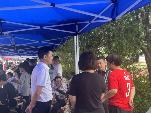 DB真人旗舰公司党委书记谢立新、经理曹蕙姿、副经理孙波和副书记曾遴琳亲临迎新现场,慰问迎新工作人员。他们的到来,不仅让同学们感受到了公司的关怀和温暖,也极大地激发了迎新工作人员的热情。